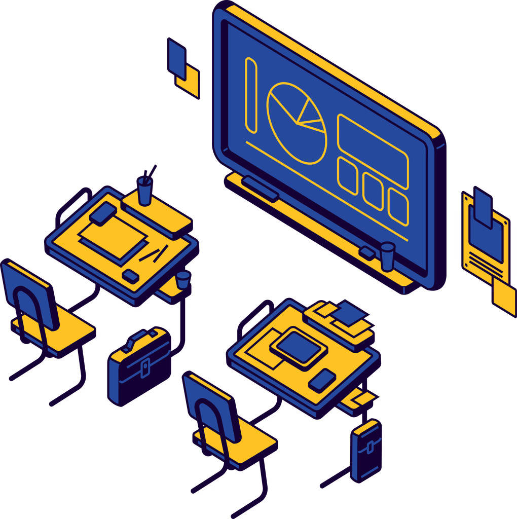 Interactive whiteboards & displays, High-definition projectors, Digital content integration, Classroom audio-visual systems, Networked learning environments.